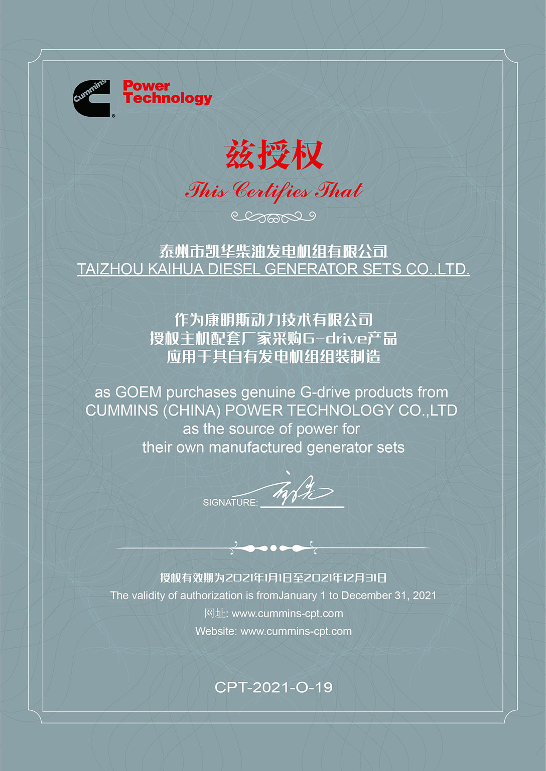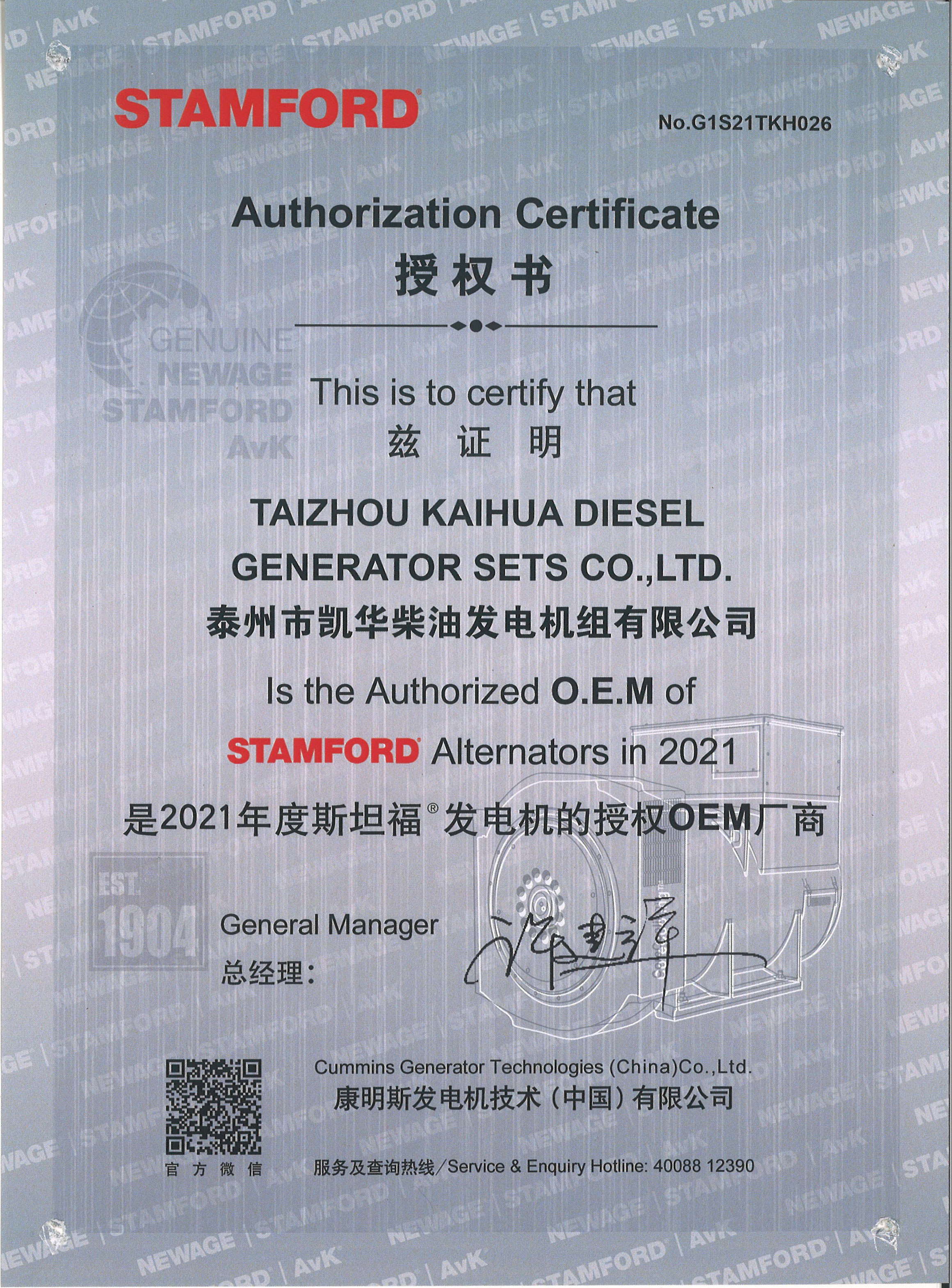 泰州市凱華柴油發(fā)電機(jī)組有限公司創(chuàng)建于2003年,是一家集柴油發(fā)電機(jī)組燃?xì)獍l(fā)電機(jī)組的研發(fā)、生產(chǎn)、銷售為一體的高新技術(shù)民營企業(yè),公司座落于“漢唐古郡,淮海名區(qū)”,具有“鳳凰城”美稱的祥泰之州——江蘇省泰州市,地處中國經(jīng)濟(jì)最發(fā)達(dá)的長三角經(jīng)濟(jì)圈,水陸空立體交通,地理位置十分優(yōu)越。公司目前注冊資本金11800萬元人民幣,生產(chǎn)基地占地六十畝,現(xiàn)有各類高素質(zhì)員工一百多名,專業(yè)技術(shù)人員達(dá)46人,其中高級技術(shù)人員16人,年銷售額近6億元。 公司主營產(chǎn)品:3~3000KW陸用柴油發(fā)電機(jī)組,15~600KW移動(dòng)拖車電站,12~1000KW船用應(yīng)急柴油發(fā)電機(jī)組,各種靜音型、中高壓、多機(jī)并聯(lián)、燃?xì)獾忍胤N機(jī)組以及進(jìn)口系列柴油發(fā)電機(jī)組,可滿足不同客戶的一切電力需求,還可滿足用戶不同電壓、不同頻率的要求。凱華公司是康明斯品牌的授權(quán)代理商,專業(yè)生產(chǎn)供應(yīng)康明斯柴油發(fā)電機(jī)組。